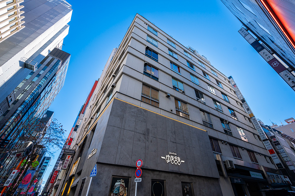 銀座7丁目、花椿通りと西五番街通りの角地にあります。